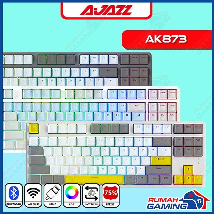 MECHANICAL KEYBOARD – AJAZZ AK873 – 75% – 3 MODE – HOTSWAP – RGB – GREY, AS GREEN